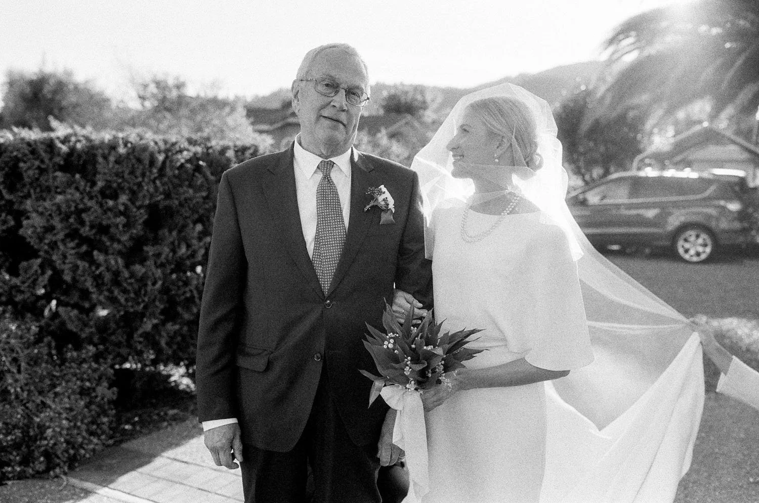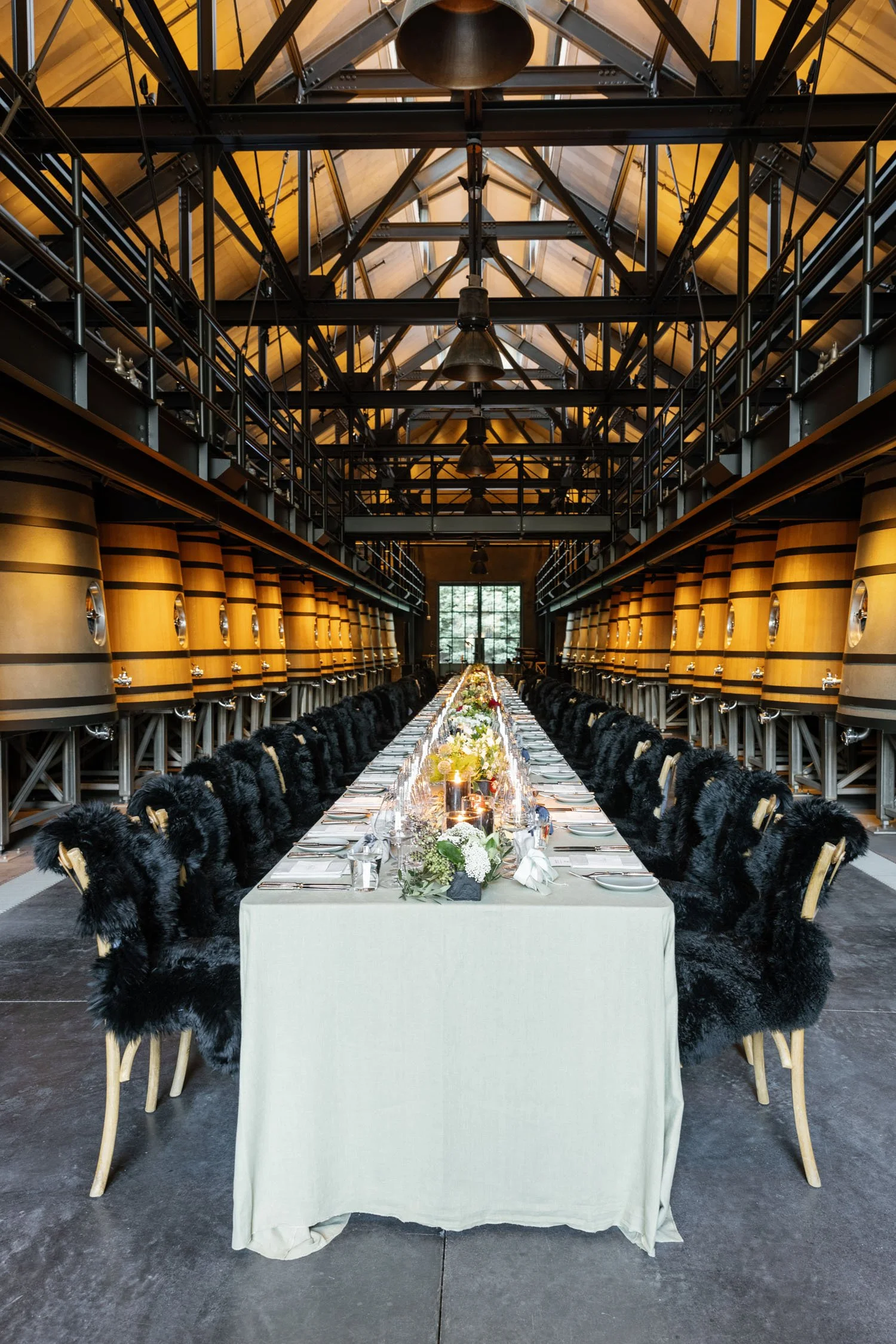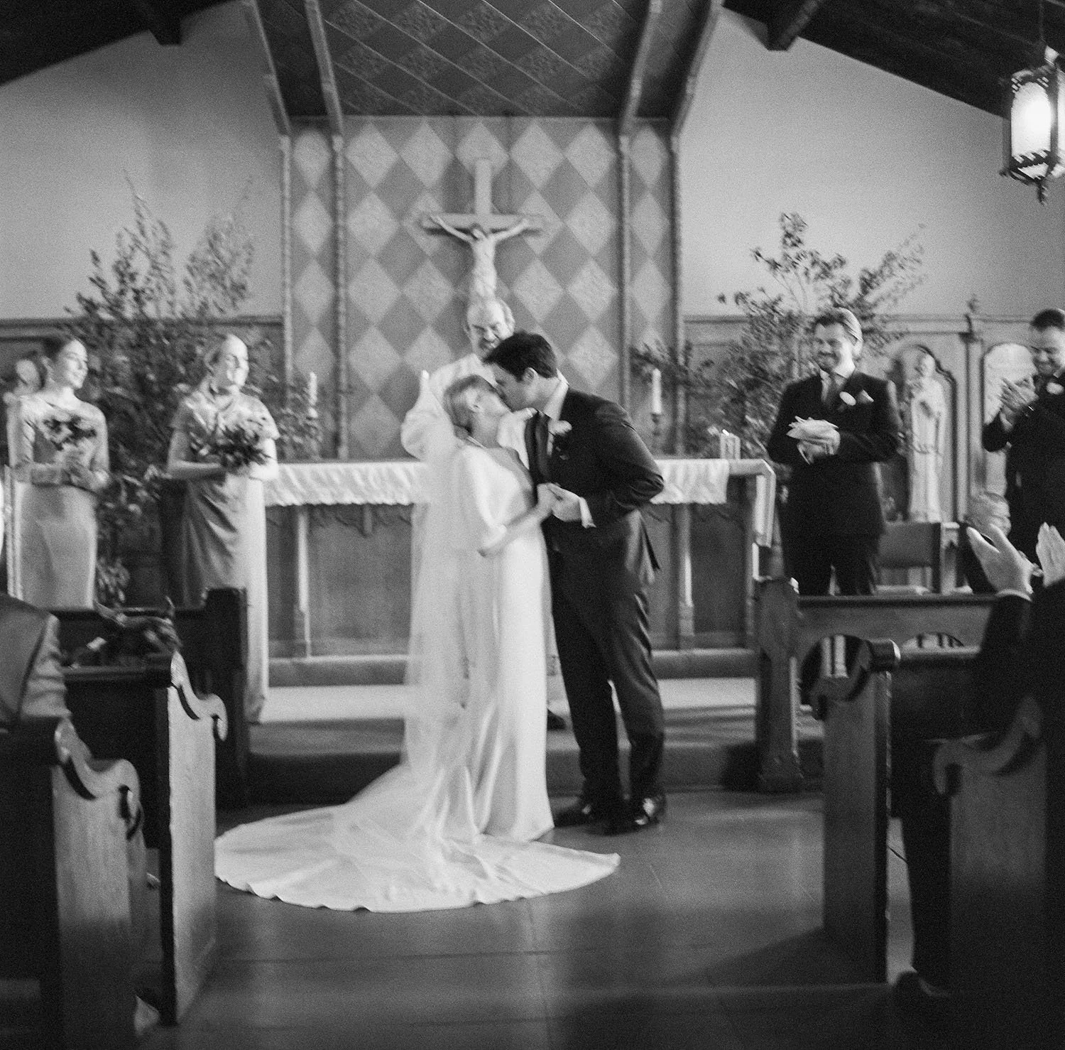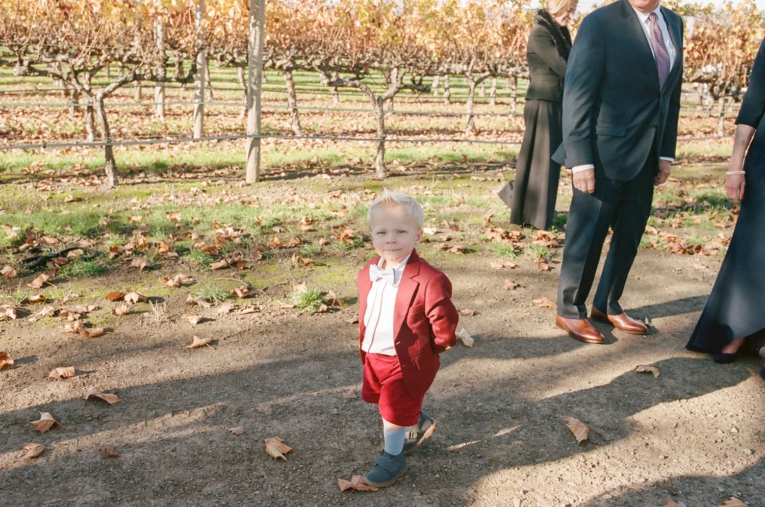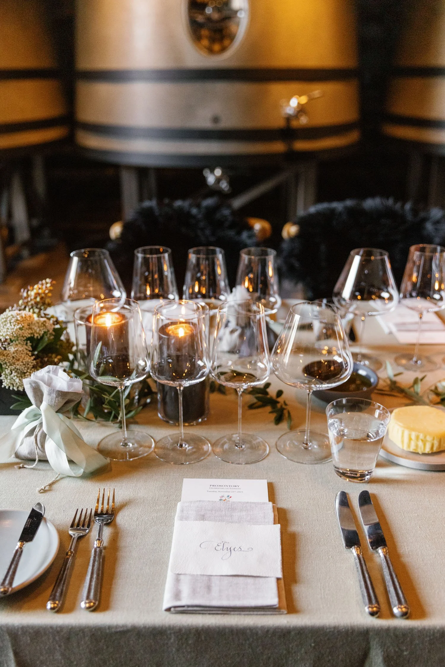 Still, Anne and Francois cherish every moment they spend with family, and it was important to them that their loved ones be present for the occasion. In late 2021, they were finally able to hold the larger gathering they had always imagined, with a Catholic ceremony in St. Helena followed by cocktails and a dinner reception at Promontory. The atmosphere was full of elegance and warmth, with an air of effortlessness that made everyone feel welcome. Anne wore a sheath gown with cape sleeves by Carly Cushnie, while Francois wore a grey suit accented by a red tie. The Charter Oak catered dinner, and Elan Artists kept everyone dancing long into the night. It was so incredible to see Anne and Francois finally get to celebrate with the ones they love, especially at a place that holds so much meaning for their personal history.